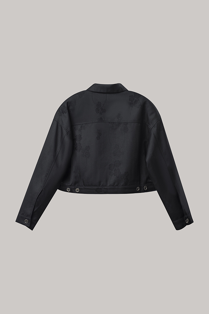 Crafted in deep black with a structured silhouette, this piece features classic utility pockets and polished button details, balancing edge with elegance.