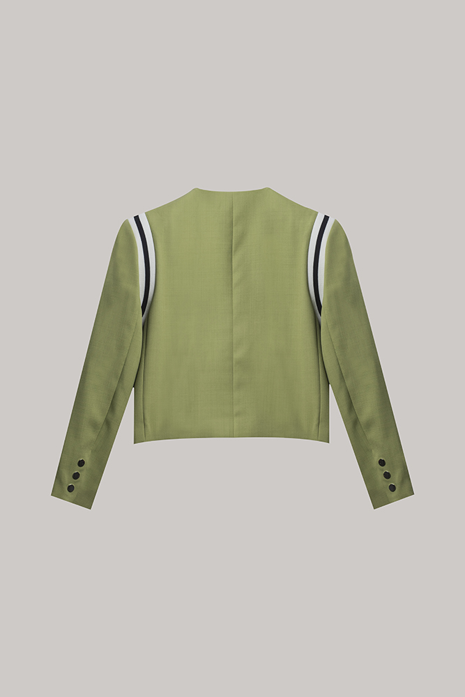 Tailored for a flattering, waist-length fit, it effortlessly balances elegance and ease—perfect for layering over dresses, pairing with high-waisted trousers, or elevating everyday looks. A distinctive piece that feels confident, fresh, and unmistakably premium.